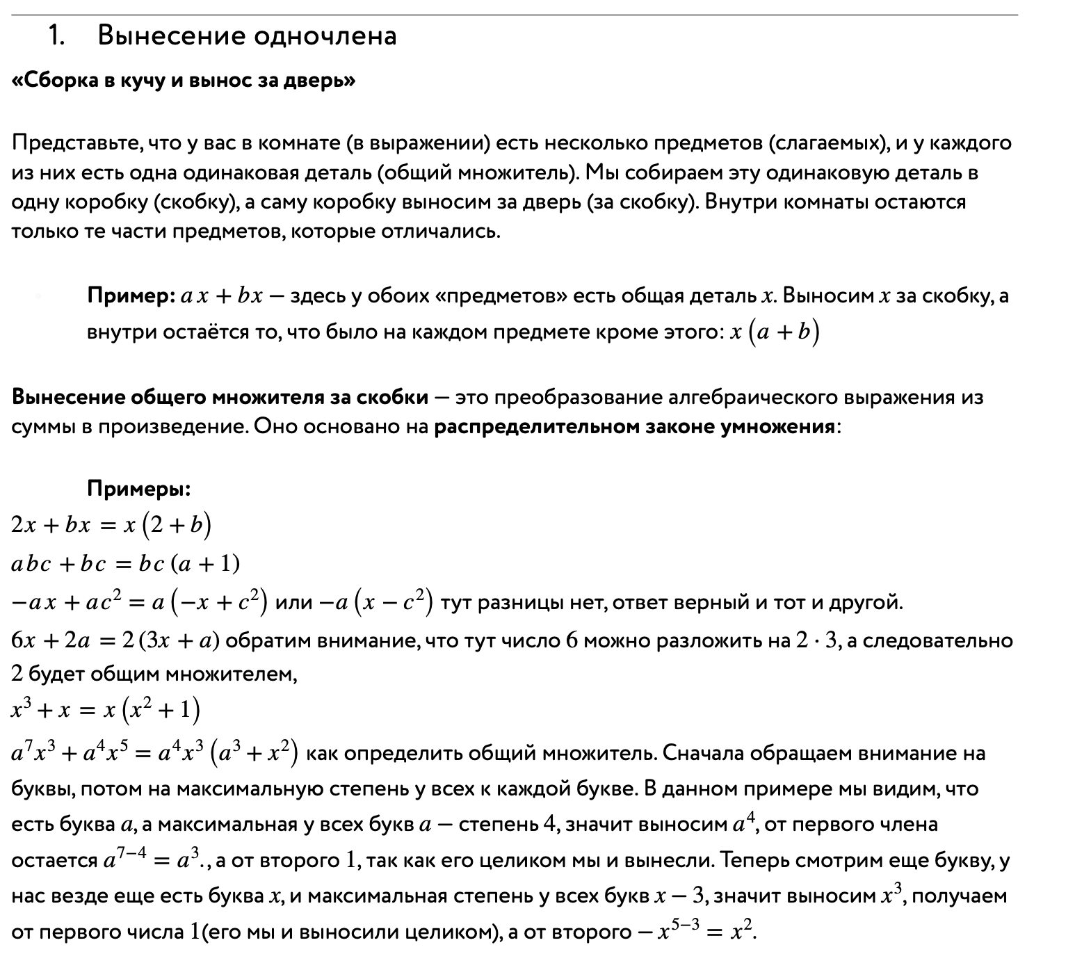Раздел 1. Вынесение общего множителя