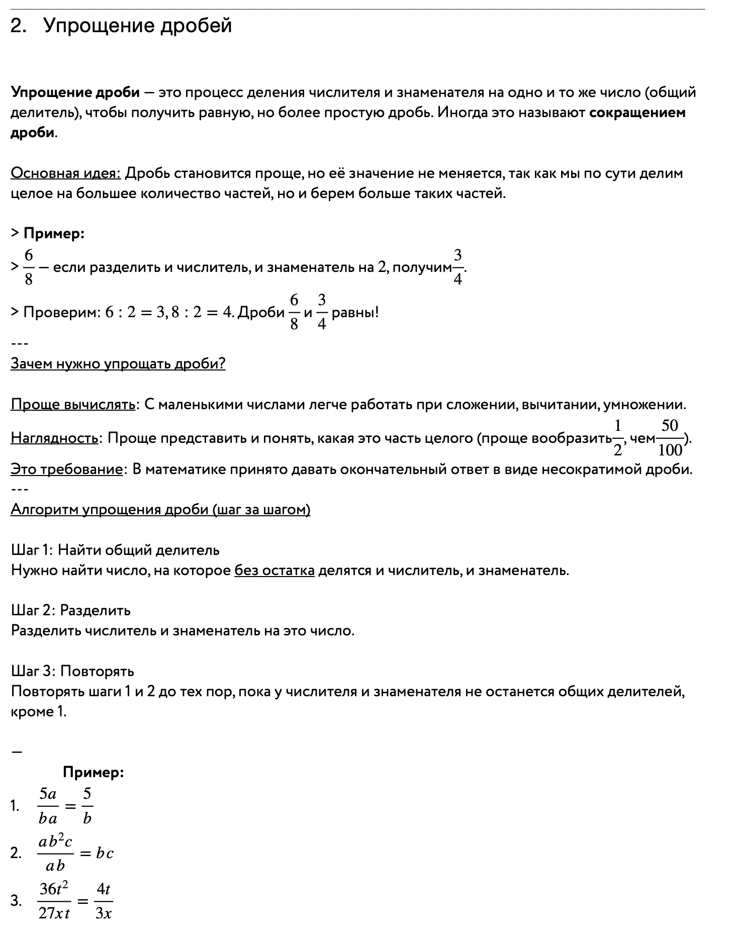 Упрощение дробей