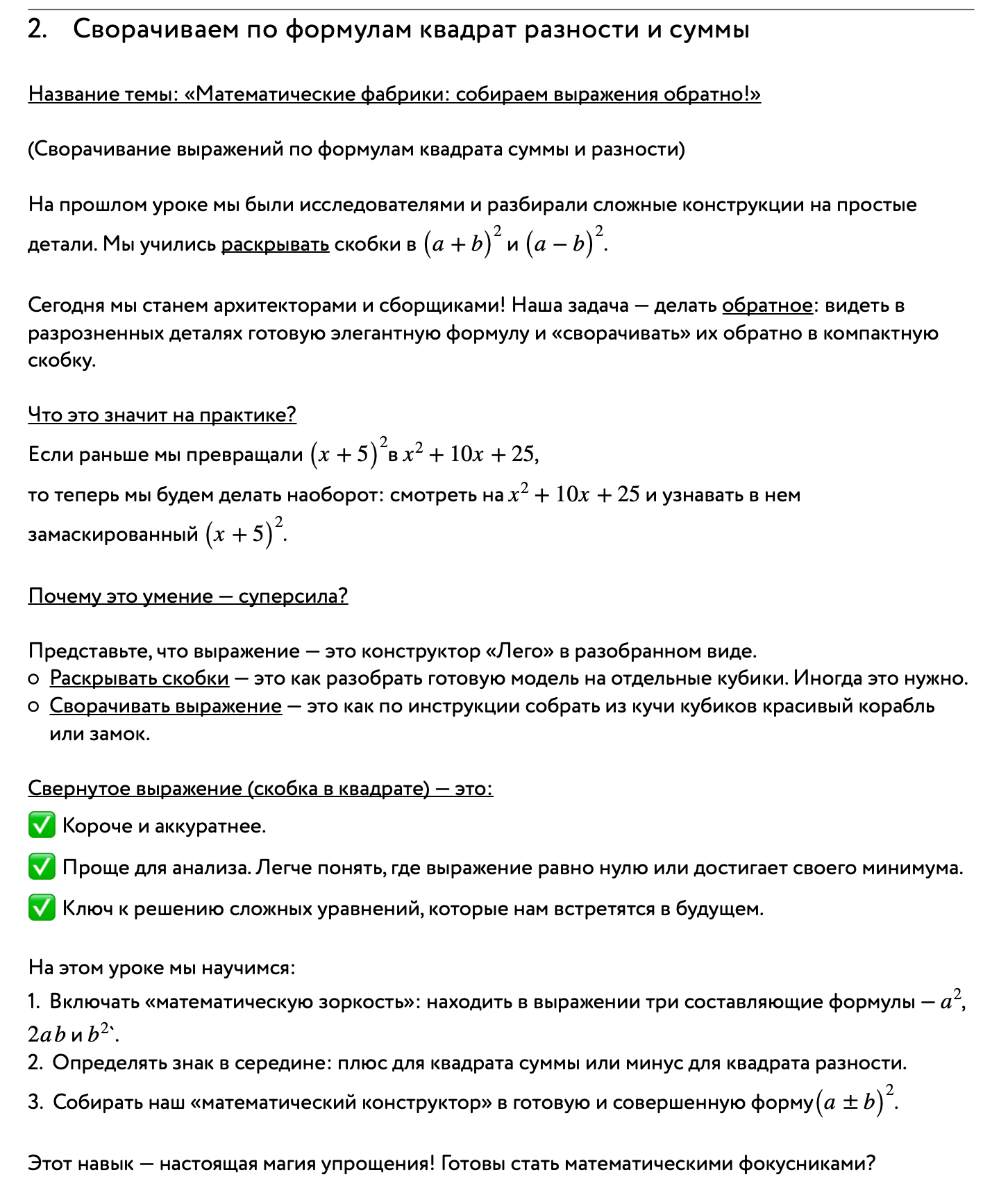 Раздел 2. Квадрат суммы и разности