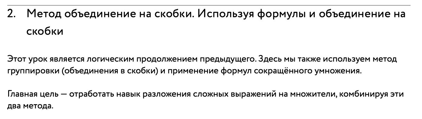 Метод объединение на скобки. Используя формулы и объединение на скобки
